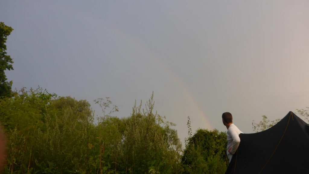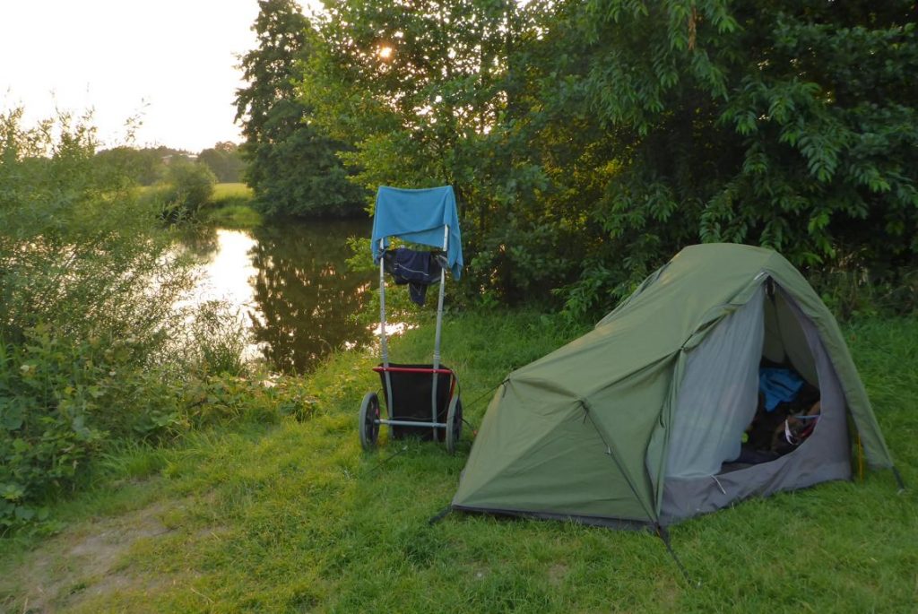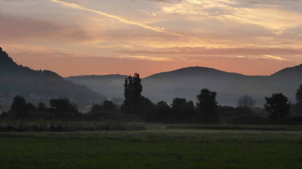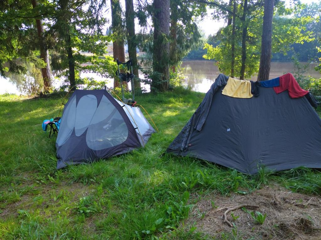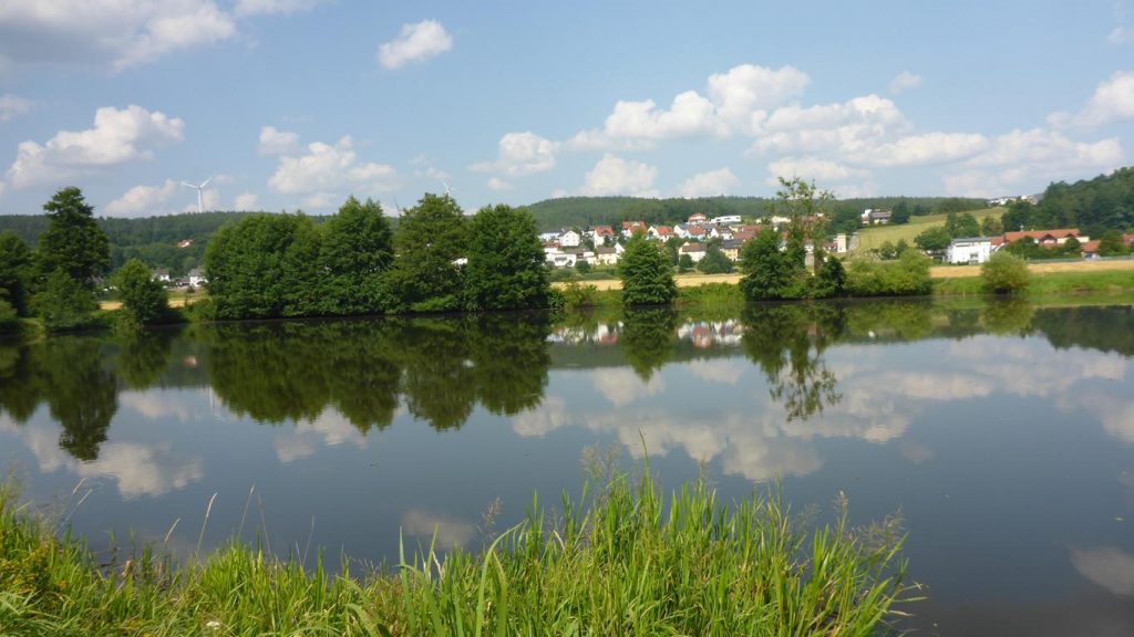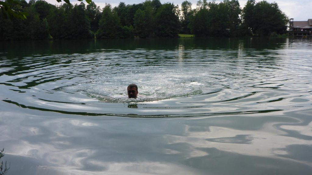 Dosyć szybko okazało się, że też nie, lub prawie nie. Wprawdzie nocowanie w namiocie na dziko, jak i sporo innych spraw faktycznie jest w Niemczech niedozwolone, ale istnieje jedno ale, o którym już wkrótce się dowiedzieliśmy, które sporo wyjaśniło i spowodowało, że i Niemcy pod względem obozowania w szuwarach, na łąkach, nad jeziorami lub rzekami okazały się zupełnie spoko krajem. Nad pierwszym napotkanym jeziorem o nazwie Sperlweiher koło wioski Moosbach, zapytałem, kręcącego się w pobliżu starszego mężczyznę, czy możemy na jedną noc rozbić się przy brzegu po drugiej stronie jeziora. W odpowiedzi usłyszałem – Eigentlich Verboten, aber…- właściwie zabronione, ale i tu urwał głos. Ale jak nikt was nie zobaczy to nic się nie stanie, a poza tym, dlaczego nie (?) Zakończył wyginając wymownie usta, poczym poczęstował nas dwiema butelkami wody i zaoferował, że gdybyśmy czegokolwiek jeszcze potrzebowali, to śmiało możemy przyjść, bo będzie tu jeszcze do wieczora. Pisałem przed chwilą, że Niemcy to życzliwy i pomocny naród i teraz ponownie dostaliśmy tego potwierdzenie. Sylwek po raz któryś tego dnia zrobił z wrażenia wielkie oczy i coś mi się zdaje, że powoli zmieniał swój stereotypowy osąd o swoich zachodnich sąsiadach. Potem wspólnie śmiejąc się i rozbijając namioty wpajaliśmy sobie do łba dewizę, która będzie towarzyszyć nam już przez całą podróż przez Niemcy – Eigentlich Verboten, aber. Właśnie to „aber” sprawiło, że dalej poszło już jak z płatka.Następnego dnia w Wernberg-Köblitz znaleźliśmy wspaniałe miejsce w zatoce nad niewielkim jeziorem, którego poranna para, przy promieniach wschodzącego słońca wprawiła nas w niemały zachwyt. Takie poranne zjawiska będą się zresztą pojawiać teraz codziennie, jako że woda w jeziorach i rzekach już dobrze się nagrzała, a noce i poranki zaczynały być coraz chłodniejsze. Potem również nie nękani ani przez straż miejską, ani przez tubylczą ludność przespaliśmy się w niezbyt urodziwym miejscu w parku miejskim w Hahnbach. Za to kolejny nocleg nad Happburger Baggersee był po dwakroć wspaniały, bo nie dość, że w końcu można było popływać, poopalać się i nieco odpoczęć, to na dodatek natura stworzyła nam niesamowity spektakl w postaci zachodzącego słońca i mi (Sylwek tak wcześniej nie wstaje) jeszcze lepszy o wschodzie, gdy w pomarańczowych promieniach wynurzającego się zza gór słońca, szare unoszące się nad łąkami mgły, zlały się z widniejącymi w dali granatowymi wzgórzami. Szkoda tylko, że po takim pięknym poranku, dzień nie był już taki wspaniały i znowu trzeba było uciekać przed deszczem i burzami. Ostatni nocleg przed Norymbergą przyszło nam spędzić tuż przy moście nad rzeka Pegnitz, który ewentualnie mógł nam w nocy posłużyć, jako schronienie, aczkolwiek na szczęście obyło się bez ewakuacji. Namioty wytrzymały całonocną ulewę, a poranna tęcza przyniosła nadzieję na zmianę pogody. Niestety tylko nadzieję. Z przerwami padało jeszcze dwa następne dni, ale tym razem było nam to już obojętne.