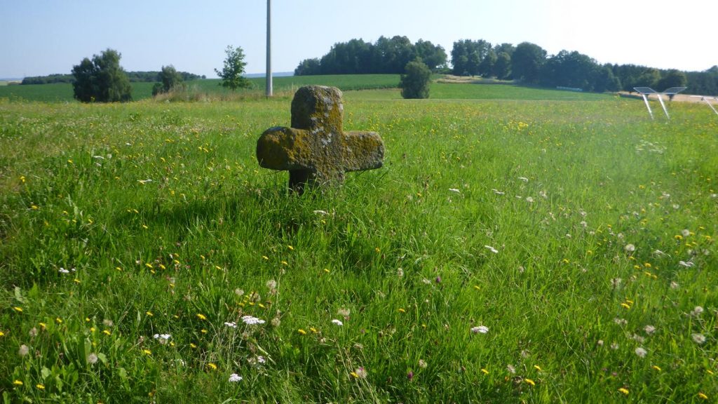 A teraz, jako się rzekło, gonię już zaległości i wracam do końca VI i początku VII etapu, czyli cofam się w czasie o dobry miesiąc, ląduję gdzieś w Czechach tuż przed niemiecką granicą i szybko, szybciuteńko zaczynam nadrabiać straty. Zanim VII etap „Drogi na Ratunek” powitał mnie zmianą państwa, języka i kultury musiałem przewędrować jeszcze kilkanaście kilometrów dzielących mnie od Rozwadowa do Czesko-Niemieckiej granicy. To właśnie na tym odcinku natknąłem się na pomnik upamiętniający 400 lecie bitwy na Krwawym Polu. Bitwy, o której przyznam się szczerze do momentu pisania tych słów nic jeszcze nie przeczytałem, także poza tym, że rozegrała się w trakcie wojny trzydziestoletniej (1618-1648) nic o niej nie wiem (chętnych dowiedzenia się więcej odsyłam do Internetu), ale sądząc po nazwie z pewnością pochłonęła wiele tysięcy dusz i być może na zawsze zmieniła stosunki panujące w tej części świata, bo kilka kroków za pomnikiem, zmienia się dosłownie wszystko.
