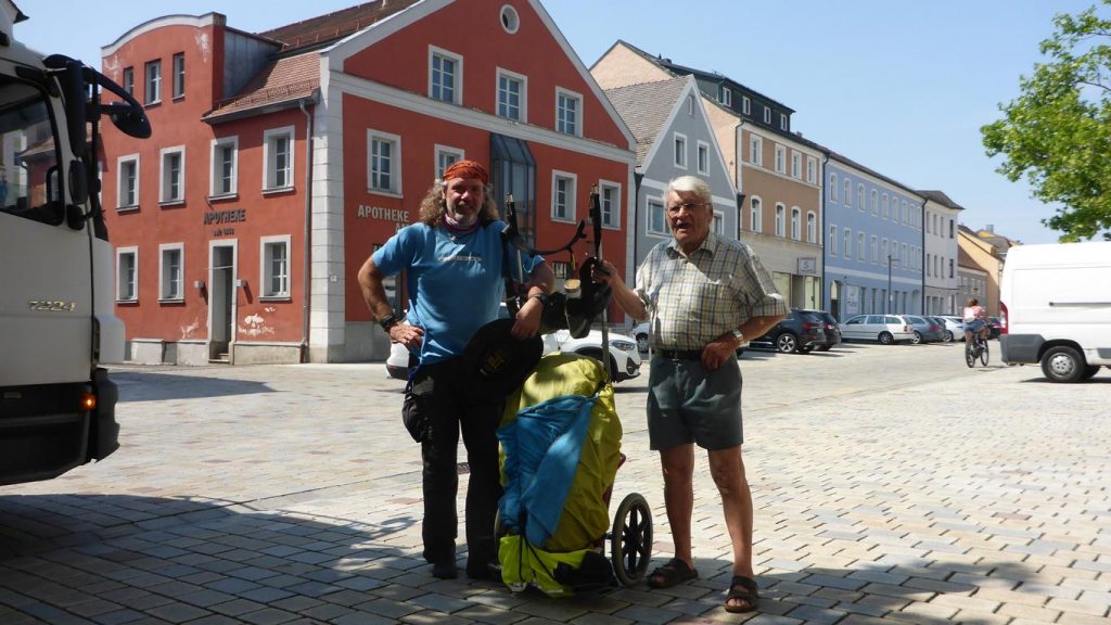 Granica między Czechami i Niemcami to nie tylko granica między dwoma państwami, ale między dwoma światami. Dla mnie, mieszkającego od kilkudziesięciu lat w Niemczech, różnice te nie są już tak bardzo dostrzegalne, ale Sylwek, mój towarzysz podróży, który po raz pierwszy w życiu przekroczył granicę tak zwanego „zachodu”, robił ogromne oczy. Tutaj naprawdę wszystko jest inne – powtarzał, co jakiś czas, a ja jedynie mogłem mu przytakiwać, bo też to zauważałem. Ludzie w mijających nas samochodach nie tylko się do nas uśmiechali, nie tylko odwzajemniali podniesioną dłonią znak pozdrowienia, ale przede wszystkim mocno zwalniali i omijając nas wielki łukiem powodowali, że głównymi drogami szło nam się dużo bezpieczniej i przyjemniej niż w Polsce czy Czechach. (Aczkolwiek w dalszym ciągu staraliśmy się ich unikać, tylko czasami po prostu się nie dało). Mijane miasteczka i wioski, to już nie zbiór rozpadających się chat w towarzystwie nowobogackich pałacyków, stojących wzdłuż dziurawych dróg. Tutaj każde nawet najmniejszy miasteczko wygląda jakby czas od wieków nie miał na nie wpływu. Wszystkie domy, mimo, że większość z nich liczy sobie kilkadziesiąt, a często i kilkaset lat, są fantastycznie utrzymane, wymalowane i wypielęgnowane. Okna, ulice pełne są kwiatów, a czyste ławki przy skwerach aż proszą by na nich spocząć. No i ludzie. Ludzie są niesamowici. Wszyscy, dosłownie wszyscy witali nas, jeżeli, już nie najczęstszym Szczęść Boże (Grüß Gott) to, chociaż zwykłym dzień dobry lub po prostu halo. Często też nas zagadywali, pytali gdzie też nas nogi niosą (tutaj przydawała się oczywiście moja znajomość języka), a i zdarzało się, że chcieli ugościć lub wciskali pieniądze na kawę lub obiad. Tych nigdy nie braliśmy, ale w takich sytuacjach rozdawałem oczywiście ulotki z celem mojej „Drogi na Ratunek” i prosiłem by zamiast nas wspomóc dzieciaki z Kliniki Przylądek Nadziei, dla których idę. Czy to coś dało? Jeszcze nie wiem, ale jestem dobrej myśli. Oczywiście w katolickiej Bawarii w porównaniu z ateistycznymi Czechami zmienił się też wizerunek i charakter kościołów, (chociaż ich wieże w dalszym ciągu służą, jako punkt orientacyjny w terenie), co Sylwkowi, który było nie było jest w trakcie pielgrzymki, bardzo się spodobało i nie omieszkał do większości z nich zajrzeć. Nie dało się też nie zauważyć, że upływający nieubłagalnie czas znowu zaczęły odmierzać kościelne dzwony bijąc nie tylko o pełnej godzinie, ale i o w pół, a niektóre nawet, co kwadrans, a to że było ich tam mnóstwo, sprawiało, że dzwoniło nam prawie na okrągło, co z kolei powodowało, że szło nam się jakby rytmiczniej