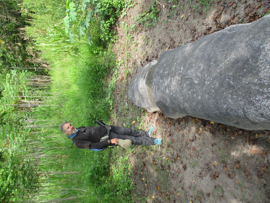 Moi nowi towarzysze nie są tacy niecierpliwi jak ja. Śpią do samego śniadania, ale zaraz po nim wszyscy dosiadamy naszych dwukołowych biegusów i ruszamy w drogę. Kierunek dżungla. Pierwszy długi linowy wiszący, strasznie się bujający, jak po nim przejeżdżamy, most, zapowiada nie lada atrakcje, z którymi przyjdzie się nam mierzyć po drodze. Jak w prawdziwej przygodowej powieści mamy przed sobą niemal wszystko, co proponuje dżungla i okolice. Wiszące mosty, drewniane kładki, błotniste ścieżki, kamieniste urwiska, ryżowe pola (nie zawsze przejezdne, więc niektóre musimy omijać), niewydeptane trakty, leśne przesmyki i inne takie, towarzyszyć nam będą przez cały dzień. Jednak nikt nie narzeka. Miała być przygoda, to jest. Szczęście, że oprócz bezdroży, pól i lasów mijamy także małe zamieszkałe osady. W nich możemy zaciągnąć języka. Haha, możemy! Moi znajomi mogą. Sam bez znajomości tutejszej mowy nie dałbym rady niczego tu znaleźć. Co poniektórzy tubylcy wprawdzie słyszeli coś o jakiś kamieniach i wykopaliskach, ale tylko niektórzy są w stanie określić, w jakim kierunku mamy ich szukać. Kluczymy, szukamy, pytamy i w końcu coś mamy. Tablica informująca o pracach wykopaliskowych wskazuje, nie tylko, że jesteśmy na miejscu, ale również, że jesteśmy jednymi z pierwszych, jak nie w ogóle pierwszymi, gośćmi na terenie powstającego właśnie archeologicznego parku. Prace nad przystosowaniem terenu do potrzeb turystycznych (karczowanie lasu, budowa betonowych alejek doprowadzających do wydobytych z ziemi kamiennych figur, opisywanie eksponatów itp.) zaczęły się we wrześniu tego roku, a więc nie mniej nie więcej tylko 3 miesiące temu. Niektóre kamienne posągi są już ładnie wyeksponowane, inne leżą jeszcze w ziemi, czekając na swoją kolej, a jeszcze inne pewnie w ogóle nie ujrzały dotąd dziennego światła. Jest ich już sporo, a z pewnością z czasem będzie jeszcze więcej, tylko czy z czasem przybędzie też wiedzy na ich temat? Na razie wiadomo tylko, że ich powstanie datuje się na czas od 3.000 lat p.n.e. do 1.300 roku n.e., że wytworzone są z szarego kamienia, nieobecnego nie tylko na obszarze całego parku, ale i dalszych okolicach (???), że poza ogromnymi wazami, dzbanami i kamieniami, których znaczenia nie można się na razie domyśleć, niektóre reprezentują też ludzi, jednak bez kończyn, a jedynie z twarzami i wyraźnie zaznaczonymi genitaliami i że figury najczęściej mają wysokość w granicach 1,5 – 2,5 m, a najwyższa mierzy aż 4 m. Do tej pory zagadką pozostaje, kto, jak i przede wszystkim, po co je wyrzeźbił i tu postawił? Tym bardziej zagadkowe jest to, że owe prehistoryczne megality, niezgrupowane są w jednym miejscu, a porozrzucane na bardzo dużym obszarze, wychodzącym prawdopodobnie poza granice parku. Opierając się o szorstki tors jednego z kamiennych ludków, czuję się trochę jak onegdaj na Wyspach Wielkanocnych, dotykając tamtejszego kamiennego kolosa. O nim też nauka niewiele wie, ale mimo wszystko przyciąga do siebie rocznie miliony, rządnych dotknięcia go lub pstryknięcia sobie z nim wspólnego zdjęcia, turystów, a tutaj jestem zupełnie sam. Czy to się kiedyś zmieni? A może nie powinno? Może lepiej w taki sposób znajdować pomniki minionych kultur, niż przeciskać się przez przywiezione autobusami i uzbrojone w długie obiektywy aparatów fotograficzne, tłumy? Czas pokaże.