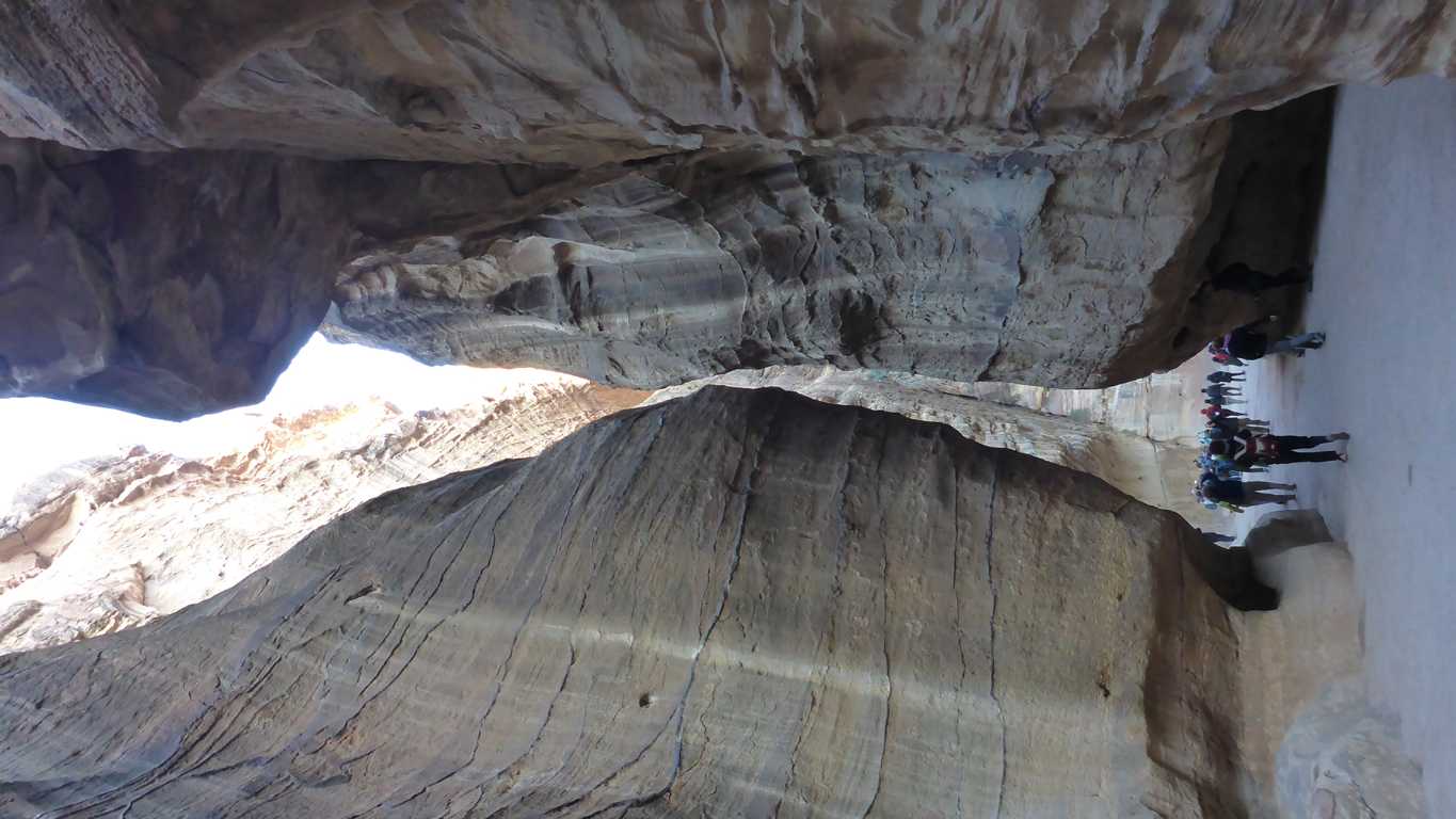 Gdy po kilku godzinach beznamiętnej, nudnej i monotonnej jazdy przez pustynną wyżynę, autobus zjeżdża nagle do zielonej doliny, która aż lśni od zieloności i fikuśnych, pobudowanych na zboczach, domów, jestem przekonany, że zbliżam się do osławionej Petry, zajmującej poczytne miejsce na liście siedmiu cudów świata. Jednak nie! Wioska, w której kierowca, zaparkowawszy autobus na ogromnym parkingu, oznajmia koniec jazdy, nazywa się Wadi Musa, co w języku arabskim znaczy Dolina Mojżesza. Jest to dokładnie to miejsce, w którym według podań Mojżesz uderzywszy laską w wysokie skały sprawił, że spod kamieni wypłynęła woda nadając dolinie żyzny widok i pozwalając na jej zasiedlenie. Nie tylko zresztą jej. Tuż obok za długim skalnym wąwozem, korzystając z wodnych zasobów Wadi Musa, zaczęli przystawać wędrujący ze wschodu na zachód lub odwrotnie kupcy. Z czasem zaskalna przystań zaczęła powoli przeradzać się w wykute w skałach miasto, znane dzisiaj, jako jeden z nowych cudów świata i przyciągające w swe kamienne progi, wylewające się właśnie, z położonego tuż obok parkingu, rzesze turystów, w tym i mnie.