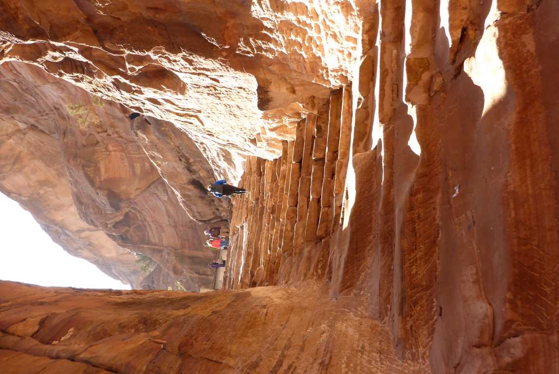 Na jutro, czyli już na dzisiaj zaplanowałem spacer do Klasztoru Al. Dajr, położonego wysoko w górach po przeciwnej stronie miasta. Tym razem nic mojego planu nie mąci. Nie zatrzymuję się długo ani w wąwozie, który rano prezentuje się zupełnie inaczej niż wieczorem, ani przy Skarbcu Faraona, który wczoraj obejrzałem ze wszystkich możliwych stron, ani nawet przy grobowcach i teatrze, które tak niesamowite wrażenie robiły na mnie o zachodzie słońca. Dopiero rzymskie kolumny grobowca Sekstusa Florentinusa, znajdującego się w północnej części miasta sprawiają, że nieco zwalniam, a nawet, by bliżej się mu przyjrzeć schodzę z głównej drogi. Potem jest już tylko uciążliwy, długi marsz po kamieniach i schodach w górę, w górę i w górą jedyną pociechą są coraz piękniej rozlewające się w dole widoki i oczekiwanie tego, co ma być na szczycie. Wykuty w skale klasztor Al. Dajr nie zawodzi oczekiwań i bezsprzecznie wart jest kapiącego z czoła potu, lekko drżących nóg i nierównego oddechu. Długa przerwa poświęcona zwiedzaniu i fotografowaniu nie tylko klasztoru, ale całej okolicy szybko regeneruje utracone siły. Na tyle zresztą skutecznie, że coraz częściej i ciekawiej zaglądam na uciekającą za skalnym gzymsem ścieżkę i nie byłbym sobą, gdybym nie sprawdził, dokąd prowadzi. Sprawdzam. Im dalej idę, tym bardziej nie wiem, dokąd. Piękna krajobrazowo droga, miejscami trochę przerażająca, gdy akurat przebiega nad głębokim na kilkaset metrów urwiskiem, a miejscami cudowna, gdy wzniósłszy się na szczyty odsłania niebosiężne, zapierające dech widoki, zdaje się być klasycznym przykładem powiedzenia, że nieważny jest cel tylko droga sama w sobie.