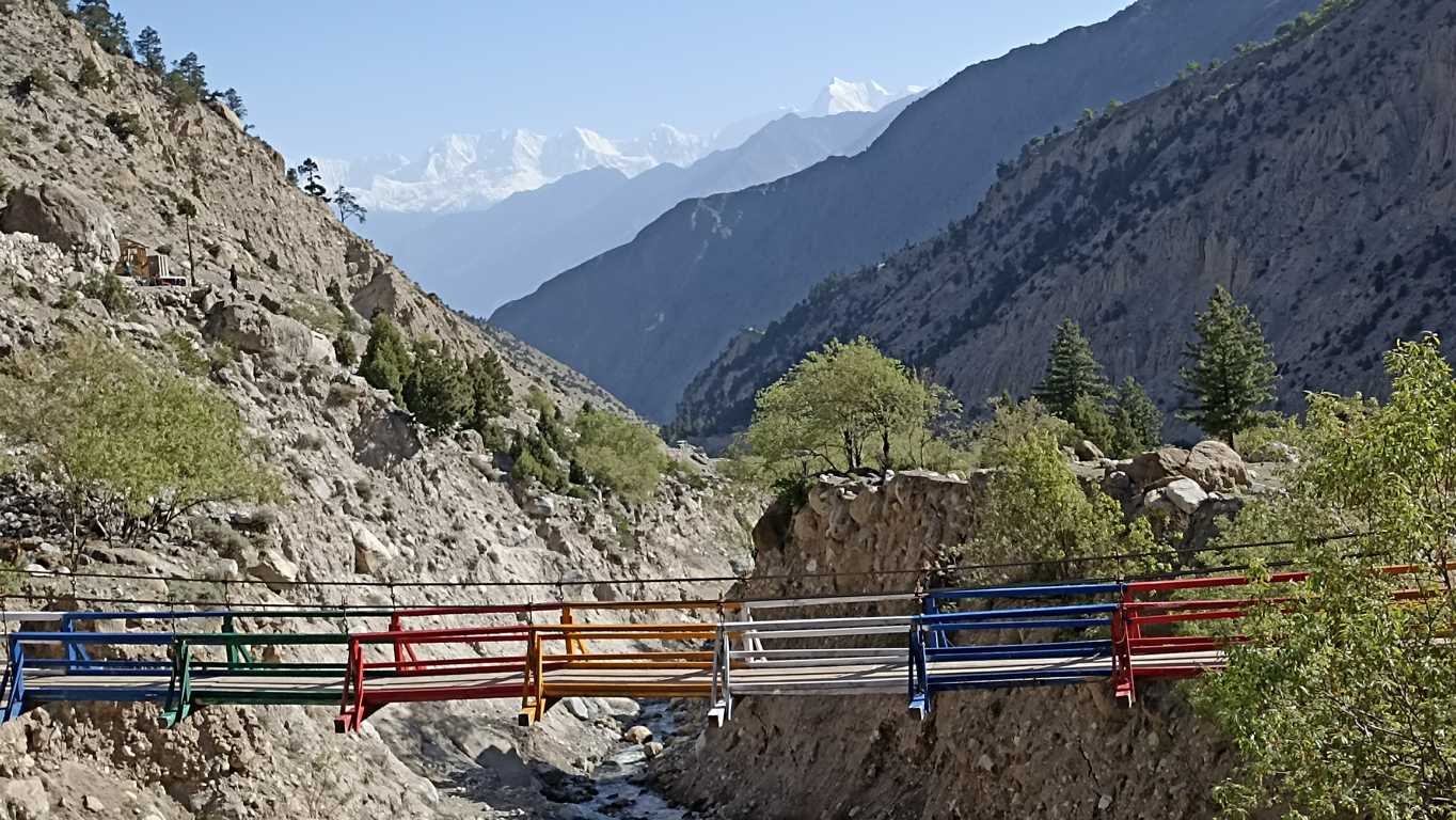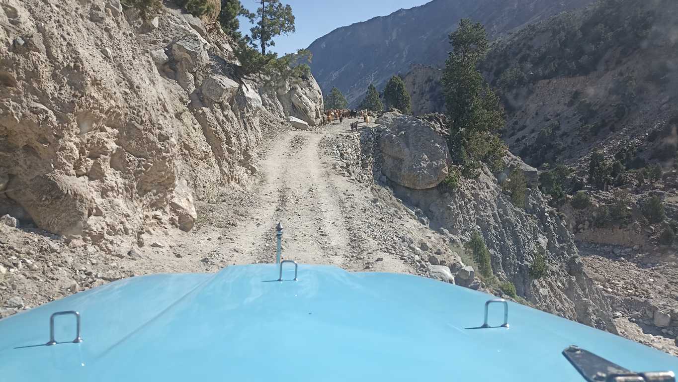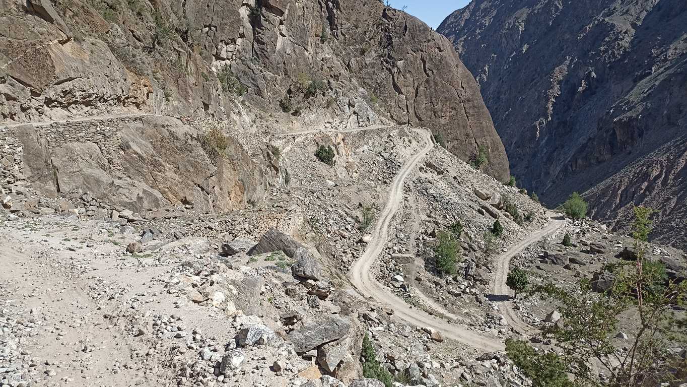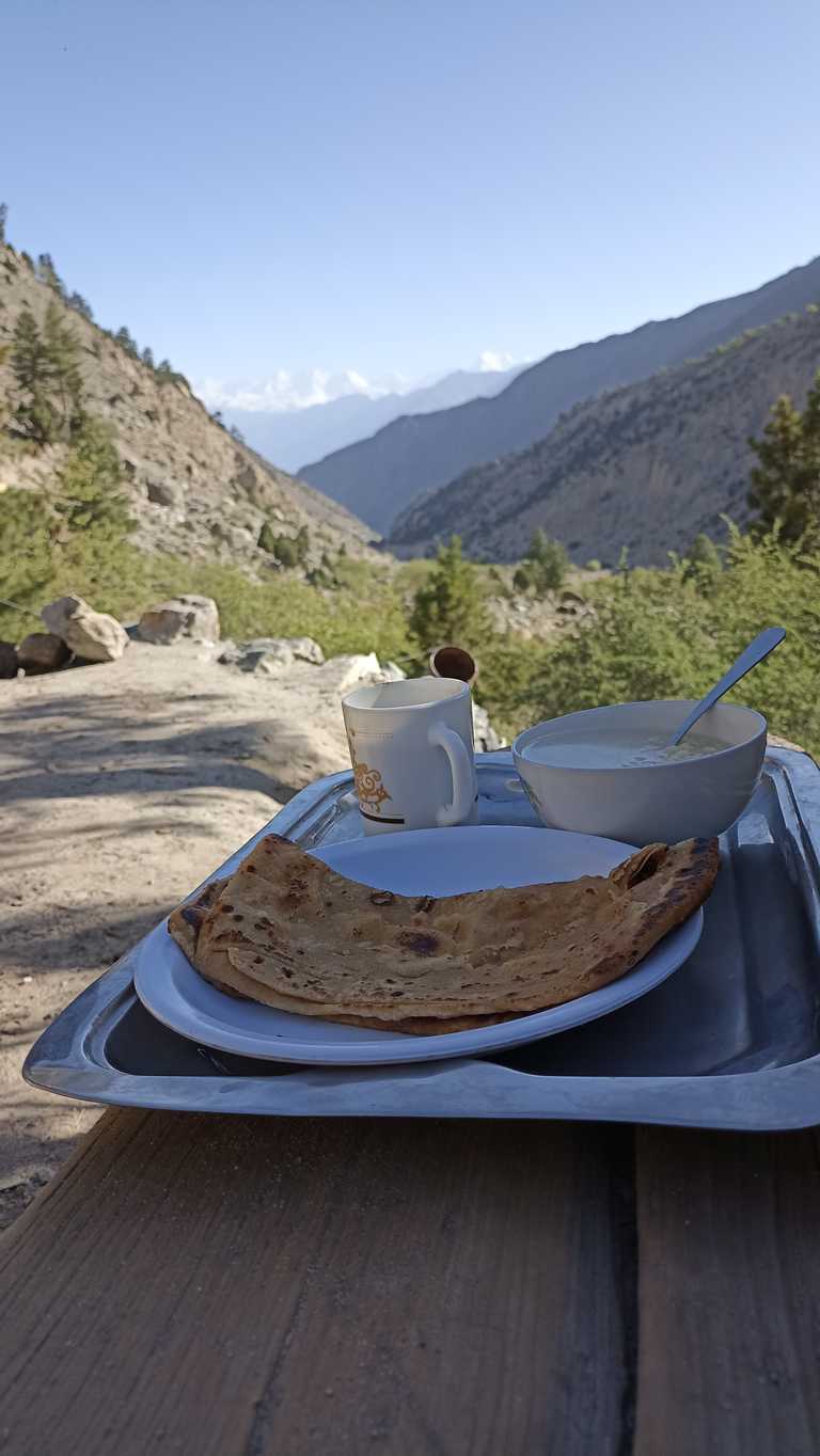 Na pierwszym wzniesieniu, gdy słońce jest już na tyle wysoko by oświetlić wyłaniający się w dali biały szczyt Nanga Parbat, lub którejś z towarzyszącej mu góry (nie jestem pewien), po raz pierwszy oddycham z głęboką ulgą. To, co widzę przed sobą sprawia, że jestem pewien, że dzisiaj nie tylko nic nie będzie inaczej, ale że rozpoczął się właśnie jeden z tych dni, które na długo wpiszą się do mojej pamięci. Okolica jest tak piękna i malownicza, że mimo, iż do celu wędrówki brakuje mi jeszcze kilku godzin, to już teraz nie mogę się nią nacieszyć. Tym bardziej, że będąc zupełnie samemu, mogę się cieszyć i przeżywać całą otaczającą mnie rzeczywistość w zupełnej ciszy i spokoju, co dodaje całości dodatkowego, nieopisywalnego uroku.
