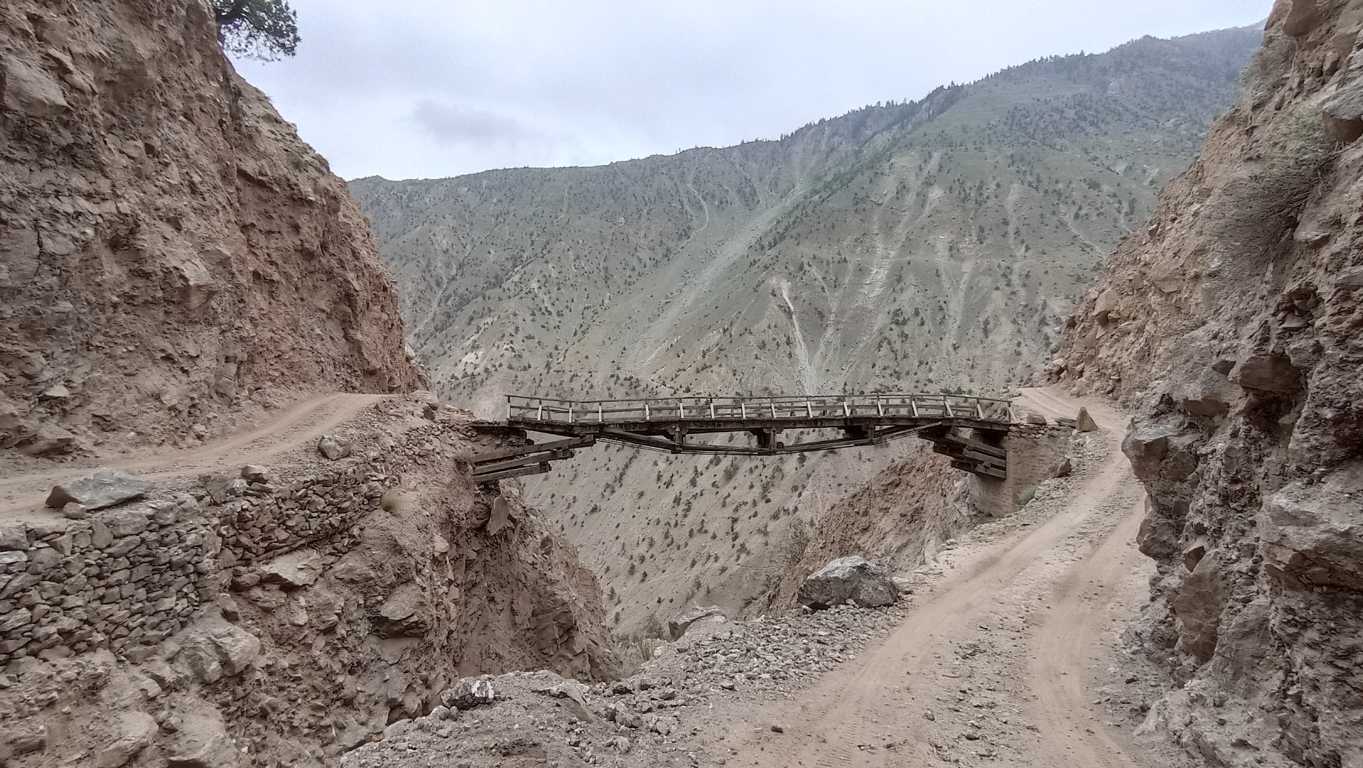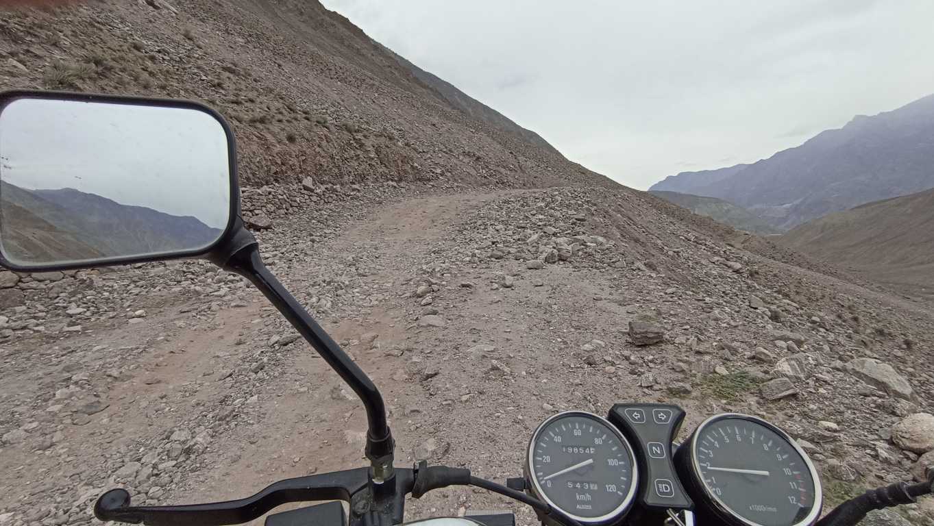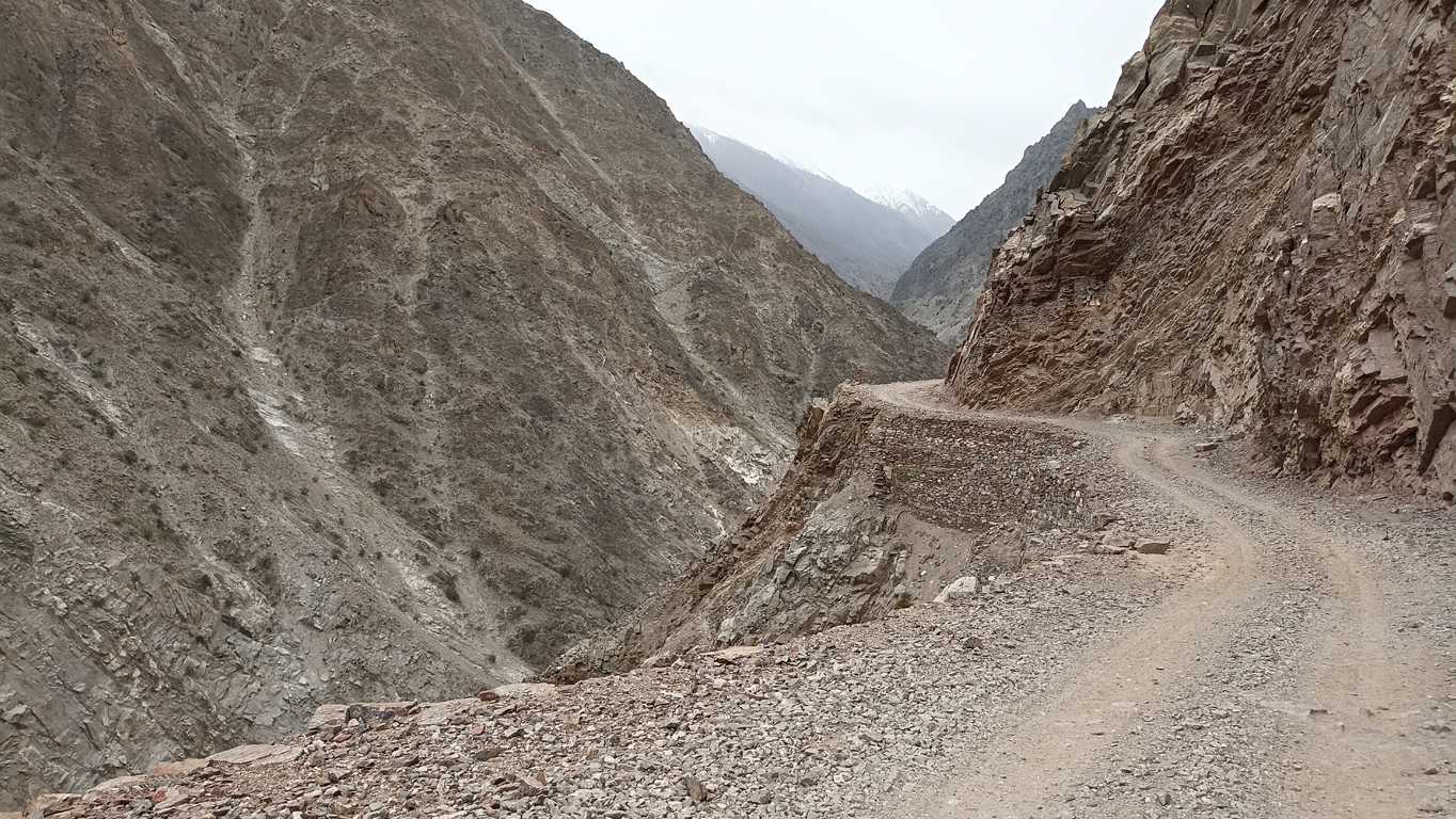 Pierwszy kilometr, może dwa idą, a raczej jadą gładko. O ile gładką można nazwać jazdę po wylatujących spod kół kamieniach. Problem zaczyna się, gdy ścieżka wyznaczona na szerokiej kamiennej równinie zamienia się w wąską, na najwyżej dwa metry, dróżkę po boku, której z jednej strony jest kilkuset metrowa przepaść, a z drugiej wysoka, kamienna ściana. Tu robi się lekko dramatycznie. Nie patrząc w głąb przepaści da się powoli jechać. Tym bardziej, że ślady wskazują, iż przejeżdżają tędy szersze pojazdy od mojego małego jednoślada. Z pewnością jakieś jeppy z napędem 4×4 lub coś podobnego – myślę, ale nie zawracam sobie tym głowy. Koncentruję się jedynie na tym, co przed moim kołem. Prawdziwe zmagania zaczynają się wtedy, gdy na tym, po czym jadę od dłuższego czasu jednostajnie wzwyż, pojawiają się krótkie, ale bardzo strome garby. Już przy pierwszym podjeździe, gdy silnik na pierwszym biegu i maksymalnych obrotach, wydaje odgłosy jakby chciał wyzionąć ducha, wydaje się, że ani on ani ja nie damy rady. Dajemy. Hura! Ale to nie koniec. Jazda w dół wcale nie jest łatwiejsza. Koła na kamieniach tańczą jak na lodzie, a ja jadąc przy samej ścianie, nie patrzę w przepaść i tylko popuszczając i zaciskając pulsacyjnie hamulec, czuję jak koła walczą z kamieniami. Podpierając się raz jedną, raz drugą nogą cudem nie tracę równowagi. Pod tym względem dobrze, że motorek lekki i zwinny. Ciężką maszyną nie byłoby szans. Pierwsze dwa garby za mną. Na trzecim, w połowie podjazdu, za późno naciskam sprzęgło. Motor nie daje rady, milknie i się kładzie. Pod tym względem szkoda, że motorek taki mały. Przydałoby się ciut więcej mocy i koni. W ostatniej chwil udaje mi się zeskoczyć i szybciej niż leżący motor się zsuwa, podłożyć pod tylne koło spory kamień. Sytuacja uratowana, ale nieopanowana. Jak w takich warunkach podnieść motor i na niego wsiąść by się nie stoczyć? Nie mam pojęcia. Jeżeli uda mi się go postawić i zapalić, to wracam – postanawiam. Jedynie taka myśl może w tej sytuacji zawładnąć moim jeszcze w miarę funkcjonującym umysłem. Gdy jednak jakimś cudem podnoszę wycieńczone żelastwo, które ku mojej uciesze (straciwszy jeno kilka kropel benzyny z leżącego w nienormalnej pozycji gaźnika), odpala, moja wyobraźnia ponownie tryumfuje nad rozumem i każe jechać dalej. Podobno postanowienia są po to, by móc je zmieniać – usprawiedliwiam sam siebie i nie bez satysfakcji zmieniam zdanie. Jadę dalej! Prawdopodobnie jestem gdzieś w połowie drogi, więc szkoda by było, wylanego do tej pory potu, przezwyciężonego strachu i całej tej hecy. Ale jak jeszcze raz motorek się wyłoży, to już na pewno wracam – przyrzekam sobie i dając mocno gazu z delikatnym popuszczaniem sprzęgła próbuję ruszyć pod górę nie pozwalając na ponowną wywrotkę. Udaje się. W dół znowu jest lepiej, aczkolwiek też niewesoło. Zamiast sprzęgła ścierają się hamulce, co czasem czuć. Znacznie weselej robi mi się dopiero, gdy ku mojemu zdziwieniu, widzę zbliżający się z naprzeciwka samochód. Kolorowy jeep z kilkoma ludźmi w środku, mija mnie na żyletkę, mimo że w skalnej wnęce przyklejam się wraz z motorem do ściany. A więc przede mną, jest jakieś życie – cieszę się. A najważniejsze, że w razie nieokiełznanych problemów jest szansa na pomoc – cieszę się jeszcze bardziej i znacznie śmielej dodaję gazu. Droga dalej albo nie robi już tak karkołomnych problemów, albo ja się już tak do niej przyzwyczaiłem, że przestaję je odczuwać. Nawet wiszący drewniany most, który na szczęście mogę objechać, nie testując jego wątpliwej konstrukcji, nie robi na mnie większego wrażenia. Co nie znaczy, że gdy po ponad 4 godzinach dojeżdżam do celu, czyli końca drogi i następnego mostu, którego ani się nie da objechać, ani na niego wjechać, nie padam ze zmęczenia. Przyglądających się mnie i mojemu rozgrzanemu do czerwoności motorkowi, twarze kierowców jeepów, siedzących przy zbitym z kilku desek kiosku, dobitnie świadczą o tym, że moje zmęczenie nie jest bezpodstawne. Pokonać tę drogę jeepem 4×4, to duże wyzwanie, a motorkiem o pojemności 150 cm i kilkunastu koniach, to nie lada wyczyn – powtarzają, jak tylko potrafią po angielsku, a ja czuję się dumny i od razu wkupiony w ich łaski. Motorek możesz zostawić tutaj – mówią. Nic mu się nie stanie. Może tu stać nawet kilka dni, a jak będziesz chciał, to pomożemy Ci zwieść go na dół. Sam idź przez most do hotelu, spytaj o nocleg, a dopiero jutro idź pod Nanga Parbat. Dzisiaj już za późno – doradzają.