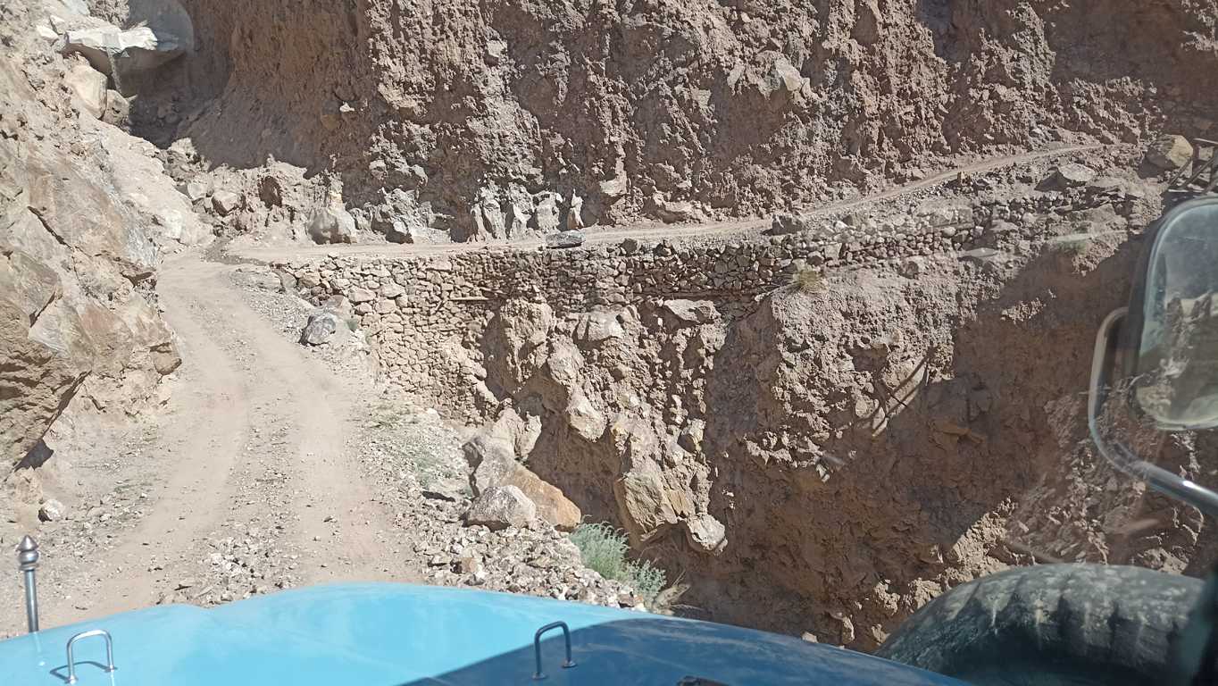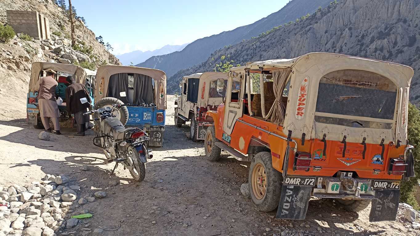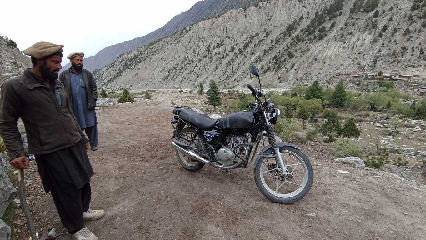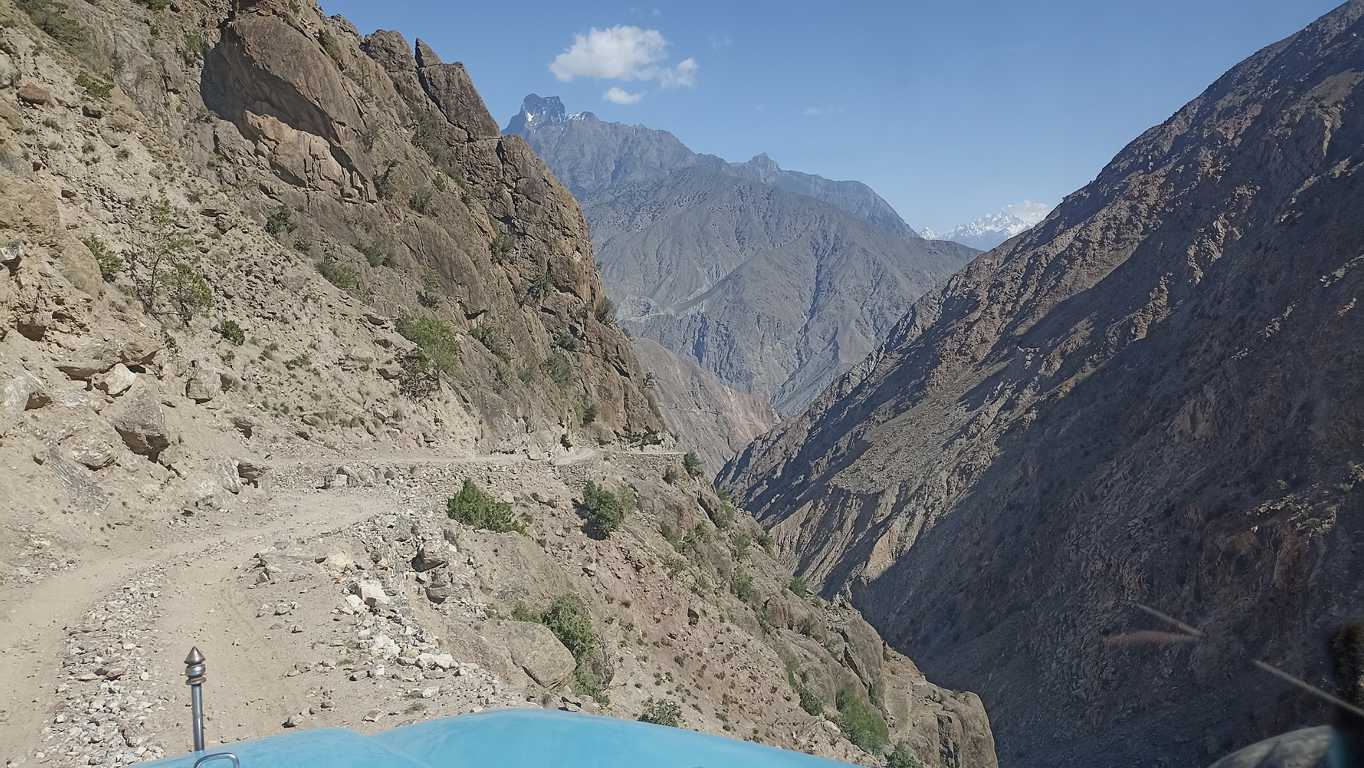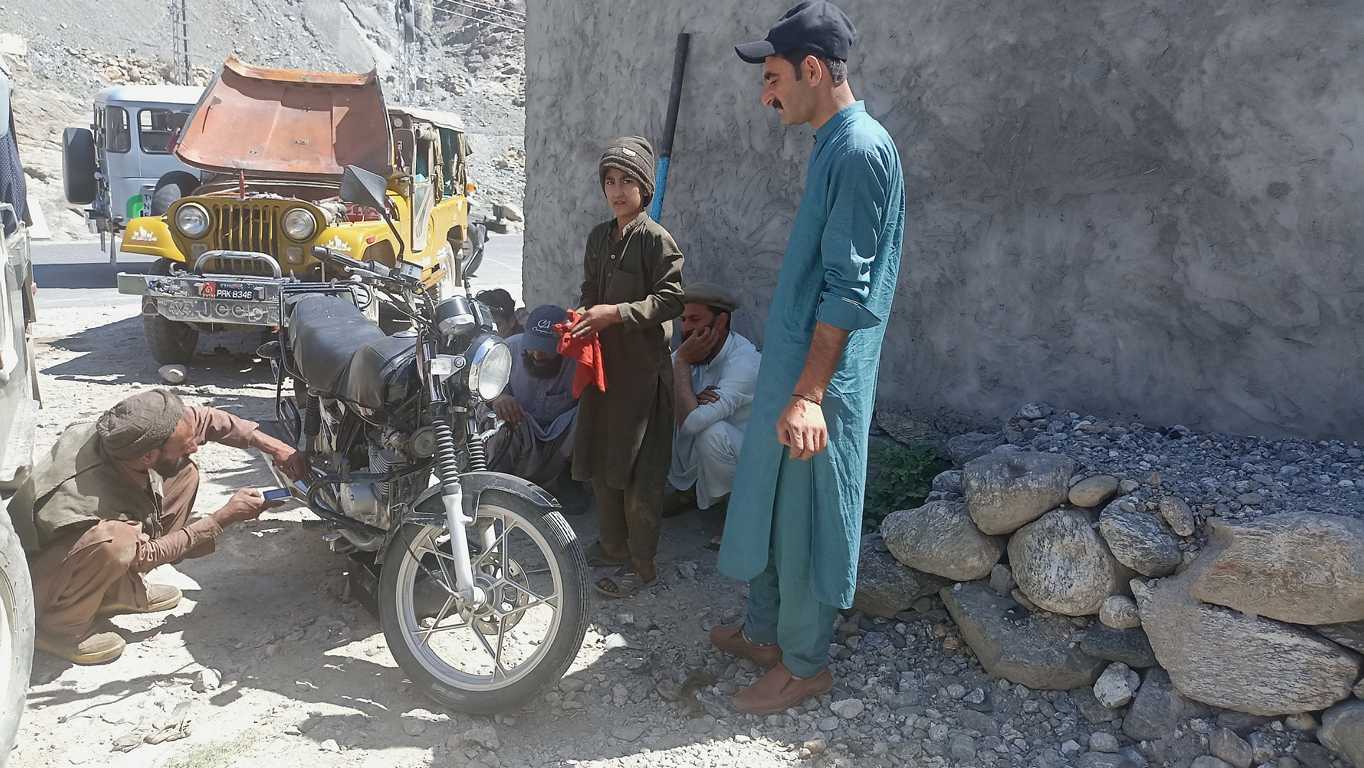 Rankiem, sprawdzam w motorze wszystko, co mogę sprawdzić na oko. Przedwczorajsze pokonywanie niepokonanego zostawiło pewnie jakieś ślady i kto wie, czym się one dzisiaj odbiją? Olej, mimo, że jest ponad minimum, jest tak czarny i śmierdzący, że pewnie nie spełnia już swych właściwości. Opony są całe, chociaż przednia wygląda na mocno zużytą (tylną niedawno wymieniałem i trzyma się dobrze). Chyba nie będę ryzykował ponownego znęcania się nad małym silnikiem i moimi mocno już nadwyrężonymi nerwami – postanawiam i próbuję dogadać się z jednym z właścicieli jeppa, by zapakować motor na pakę i zjechać z nim do drogi. Tych, którzy coś takiego proponowali mi dwa dni temu, dzisiaj nie ma. 20 dolarów – pada jedno jedyne słowo bez zbędnych komentarzy. 20 dolarów jest OK – odpowiadam, bez próby pertraktacji. Tak samo szybko, jak się dogadujemy, motorek wraz z moim plecakiem lądują między siedzeniami, gdzie zwykle siedzą turyści. Ja pakuję się do kabiny obok kierowcy i zjeżdżamy. Obok kierowcy, czyli z prawej strony tzn. strony, po której wzdłuż drogi jest cały czas kilkusetmetrowa przepaść, a ja siedząc bardziej wysunięty niż dotykające skraju przepaści koło, czuję się gorzej niż w wesołym miasteczku na kolejce śmierci. Tam przynajmniej mam świadomość, że kolejka przechodzi regularnie przegląd techniczny, tutaj mam pewność, że o czymś podobnym nikt nigdy nie słyszał. Jedynie doświadczenie kierowcy i czujne oko Anioła Stróża może uratować nas od osobistego poznania prawa przyciągania i przekonania się o jego sile. Dobrze, że szczęśliwie i dosyć szybko docieramy do głównej drogi i małego, mieszczącego się w drewnianej szopie warsztatu dbającego, o jako-taki stan kilkunastu parkujących przy nim lub pod hotelem u góry, jeppów,. Z rozdygotanym poczuciem zadowolenia wysiadam na miękkich nogach z samochodu, próbując złapać utracony na którymś zakręcie błędnik i otworzyć zaciśnięte od dawna szczęki. Trwa to kilkanaście sekund. W tym czasie motorek ląduje już pod warsztatem, a mechanik, niemający więcej niż 14 lat, zaskakująco szybko wymienia olej i dokonuje ogólnego przeglądu. Znaczy się po prawie 4 “ach” od nieplanowanego odbicia z wytyczonej trasy i odwiedzeniu podnóża Nanga Parbat, jesteśmy i ja i mój motorek gotowi do dalszej drogi. Jeszcze tylko łyk zimnej coli w przydrożnym barze z widokiem na dziś tak daleki, a wczoraj tak bliski 9 szczyt świata i ruszamy. Kierunek Dolina Hunzy.