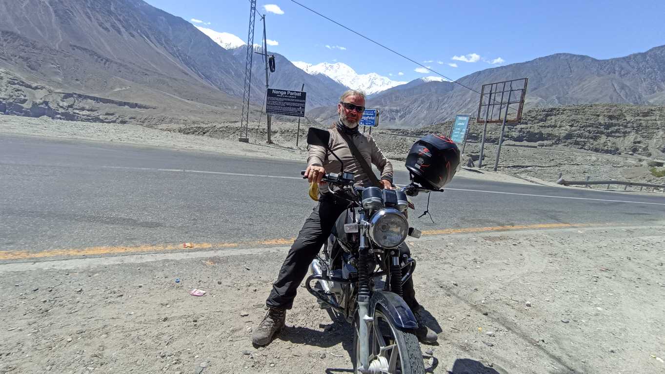 Już trzeci dzień jadę sławną Karakorum Highway z Islamabadu w kierunku chińskiej granicy i ciągle nie mam dosyć. Wprawdzie to, na czym siedzę strasznie już boli, ręce i nogi trochę drętwieją, ale oczy wciąż nie mogą się napatrzeć, a dusza nacieszyć. Kręta droga prowadząca raz z jednej, raz z drugiej strony stromych ścian, urwistych wąwozów, których dnem rwie ostrym nurtem rzeka Indus lub jej dopływy, a w której od czasu do czasu odbijają się białe czapy górujących nad nami śnieżnych kilkutysięczników, dostarcza mi tyle adrenaliny i satysfakcji, że naprawdę nie wiem dlaczego się nagle zatrzymuję i szukam czegoś innego. Moją uwagę przykuwa wąska, kamienista ścieżka biegnącą hen w górę. Mało mam wrażeń? Mało mi przeżyć po ostatniej panie w kole i kilku przeprawach przez zalewające drogę potoki? Mało mi przygód z eskortującym mnie wojskiem? Hm? Może nie mało, tylko już o tym nie myślę. Moje myśli są teraz tam, dokąd prowadzi ta prawie niewidoczna na mapie, a jeszcze mniej wśród kamieni, ścieżka. Na mapie to cieniutka kreseczka, lepiej widoczna w znacznym powiększeniu, która snując się niczym nitka kończy się przy jakimś moście i czymś, co oznaczono napisem hotel. Nie to jednak jest najważniejsze. Za mostem, za hotelem, dosłownie centymetr, może dwa (zależy od skali powiększenia) jest skupisko kilku kwadratów oznaczających prawdopodobnie jakieś zabudowania, a jeszcze centymetr dalej trójkąt z napisem Nanga Parbat. To właśnie on i ten napis, tak mnie intrygują, że wstrzymuję gorącą od kilkugodzinnej jazdy maszynę i zagłębiam się w myślach. Uważnie studiuję mapę. Mało na niej widać. Potem przyglądam się surowej, kamienistej okolicy i również nie widzę nic, co mogłoby mi ułatwić podjęcie decyzji. Jechać czy nie jechać – oto jest pytanie. Zawsze mogę zawrócić – jak zwykle w takich momentach, najbardziej złota myśl przechodzi mi do głowy, przechylając szalę na stronę „jechać”. Zaraz po niej słyszę wewnętrzny głos -„raz kozie śmierć!”, co ostatecznie kończy rozterki powodując, że zjeżdżam z głównej drogi i ruszam po kamieniach, dziurach i wybojach ostro w górę w kierunku jednego z najwyższych szczytów świata.