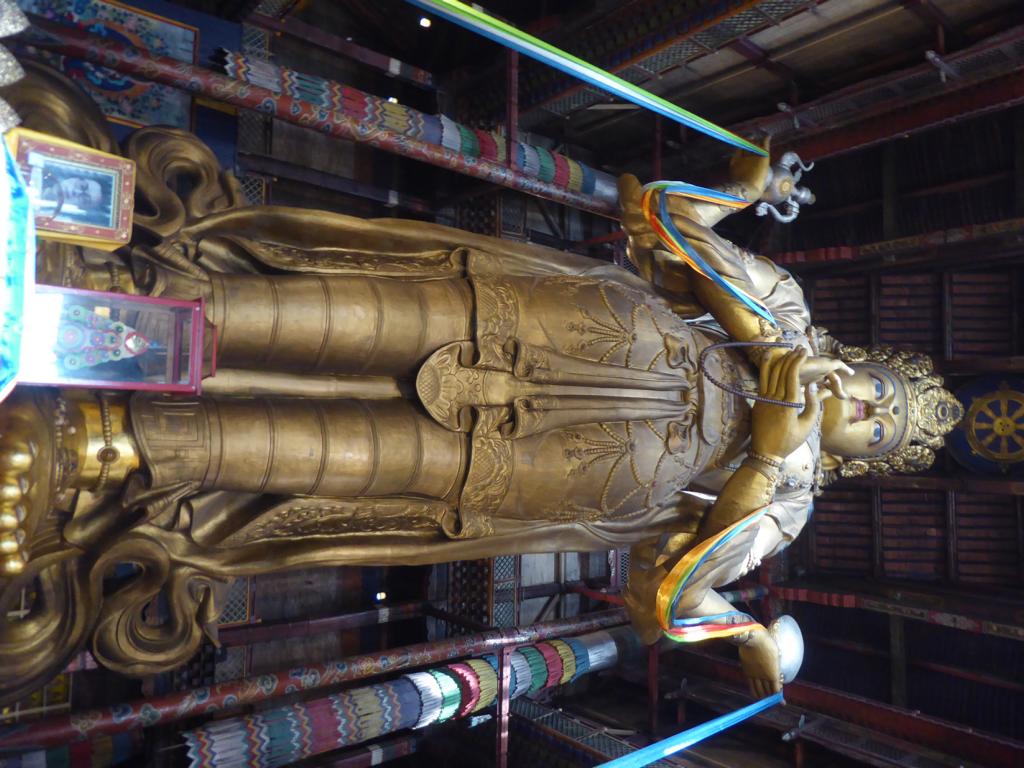Przez następne dni zwiedzam sobie inne coraz bardziej oddalone od centrum w różnych kierunkach, dzielnice, wszystkie stosunkowo do siebie podobne, zostawiając sobie na koniec wisienkę z tortu, jaką według przewodników jest klasztor Gandan. Pełna jego nazwa brzmi Gandantegtschinlen i znaczy tyle, co Pełny Wolności. Klasztor Pełen Wolności położony jest stosunkowo blisko centrum, także nie trudno do niego trafić głównymi drogami. Jednak jak się pójdzie, tak jak ja najbardziej lubię, zaukami, tylnymi, wąskimi uliczkami, to po drodze trafić można na dodatkowe, tak jakby przedklasztorne atrakcje. W ten sposób udaje mi się wejść do buddyjskiej szkoły pełnej ogolonych chłopców, znaleźć nie wiem jak, jeszcze jedną górkę nie tylko z małą buddyjską świątynią i szamańskim kopcem, ale również z dosyć atrakcyjnym widokiem na miasto z innej strony i na koniec dostać się do klasztory Gandan jakby od tyłu. To pozwala mi przynajmniej na początku kontemplować to miejsce w zupełnej samotności. Potem im bliżej głównego wejścia tym robi się tłoczniej, głośniej i mniej duchowo. Długo chodzę po niemałym obszarze klasztoru zaglądając do chyba wszystkich pomieszczeń, podwórek i zakamarków, zdając sobie sprawę, że to już moje ostatnie chwile w kraju Dżingis Chana, ale na pewno nie ostatnie spotkania z Buddą, który z pewnością za południową granicą, w państwie środka, w którym będę już pojutrze, będzie miał równie wiele, równie ciekawych świątyń.